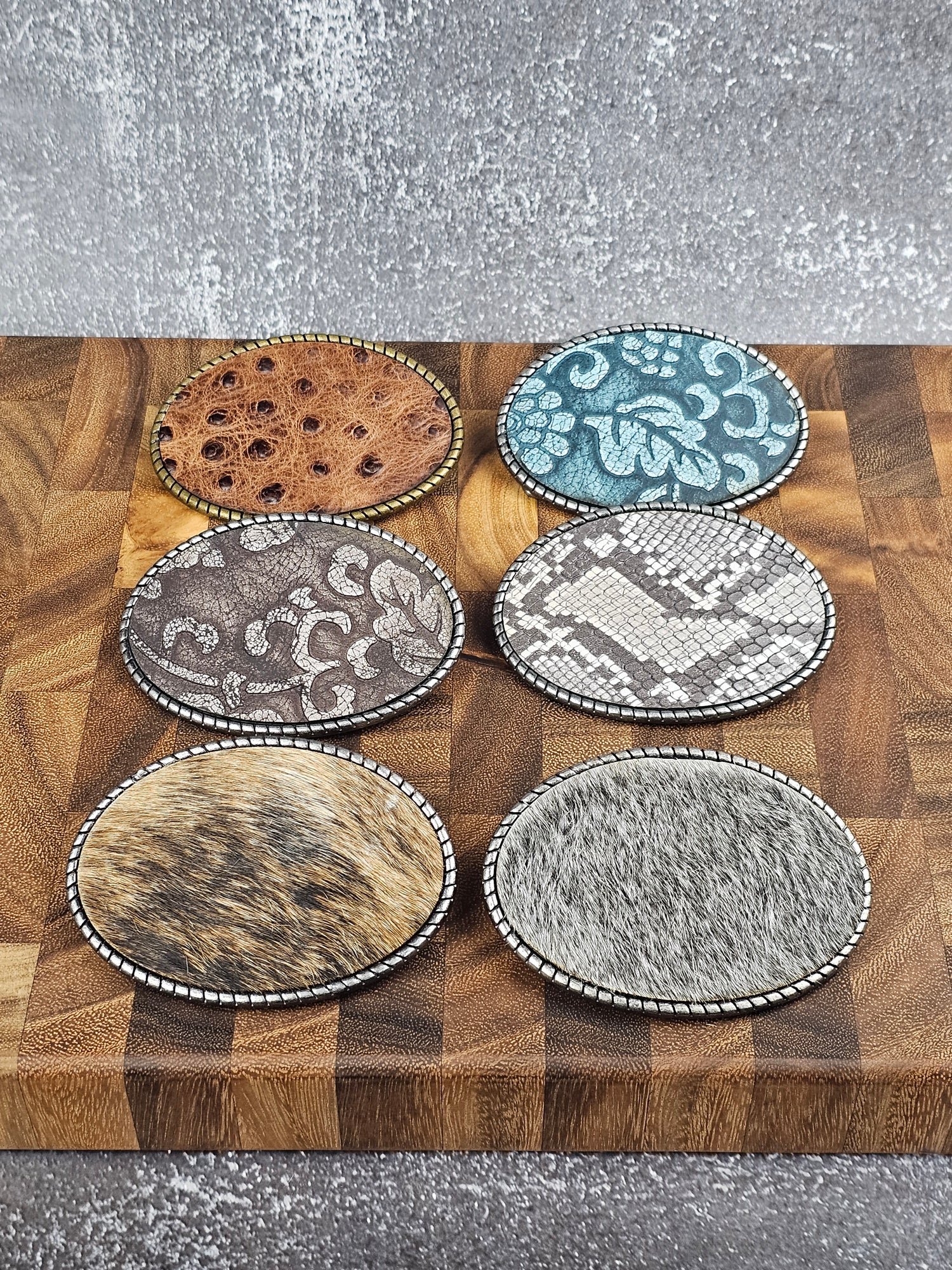 These belt buckles are a striking addition to any wardrobe. Great for making a statement in any outfit. Fits most snap belts and is available in several colors.